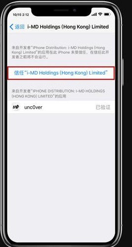 步驟 6、 unc0ver 安裝后,需要到設(shè)置→通用→描述文件和設(shè)備管理→企業(yè)級(jí)應(yīng)用,找到unc0ver 的證書并信任,才能使用。如果無法打開網(wǎng)頁,請(qǐng)掛V 嘗試。