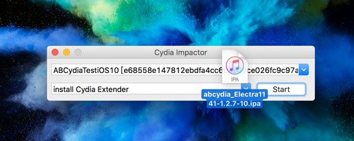 3.拖動(dòng) 下載好的 abcydia_UndecimusX.ipa 拖到 Cydia Impactor 里