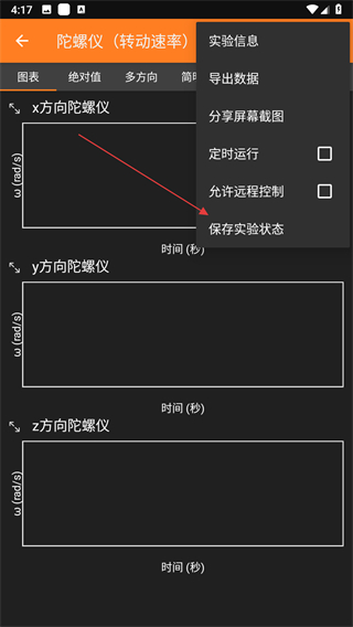3、在彈出的菜單中,點(diǎn)擊保存實(shí)驗(yàn)狀態(tài)選項(xiàng)。
