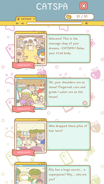 ◆可愛貓貓為主題的經(jīng)營游戲,擁有自己的水療館,溫馨治愈系的游戲畫風(fēng)。