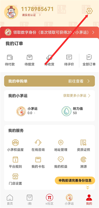 1、在我的頁面,需要點擊右上角設(shè)置的圖標(biāo),進(jìn)入設(shè)置的頁面。