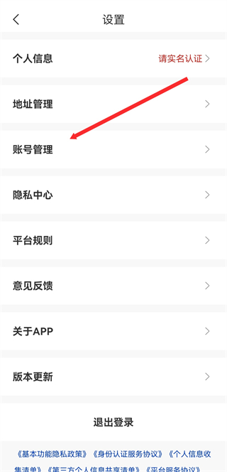 2、在設(shè)置的頁面,點擊賬號管理按鈕,進(jìn)入賬號管理的頁面。