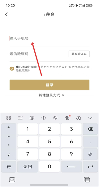 2、在登錄界面輸入手機(jī)號碼信息以便獲取驗證碼。