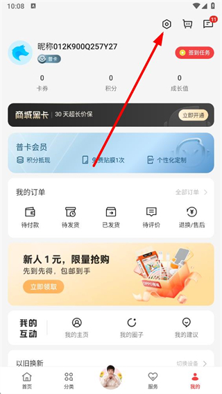 2、在我的頁(yè)面,點(diǎn)擊頭像右上方的設(shè)置圖標(biāo),進(jìn)入設(shè)置界面。