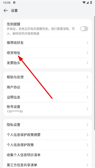 3、在設(shè)置界面里,找到并點(diǎn)擊收貨地址選項(xiàng),進(jìn)入管理收貨地址頁(yè)面。
