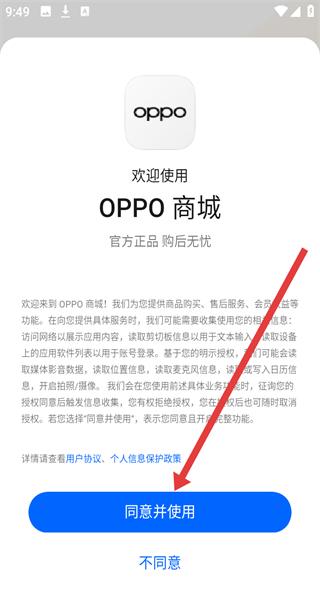 1、在打開(kāi)App后,可以通過(guò)點(diǎn)擊窗口中的同意并使用按鈕,進(jìn)入使用。