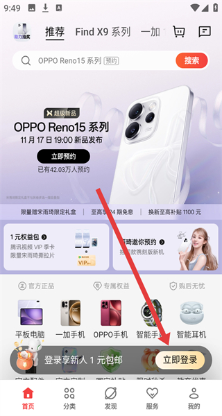 2、進(jìn)入到應(yīng)用首頁(yè)中,可以點(diǎn)擊下方立即登錄按鈕,開(kāi)始登錄操作。