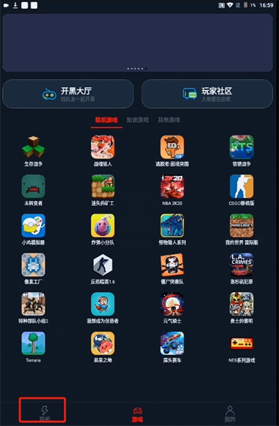 2、接著進(jìn)入軟件的首頁(yè)可以看到聯(lián)機(jī)這一個(gè)功能,點(diǎn)擊進(jìn)入到聯(lián)機(jī)的頁(yè)面開(kāi)啟聯(lián)機(jī);