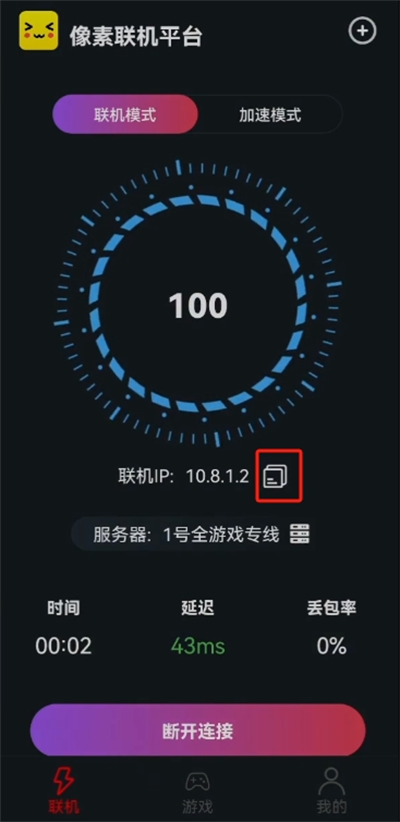 4、在這里可以看到自己的聯(lián)機(jī)ip然后進(jìn)行復(fù)制,在自己想要聯(lián)機(jī)的游戲中輸入網(wǎng)絡(luò)IP即可聯(lián)機(jī)成功;