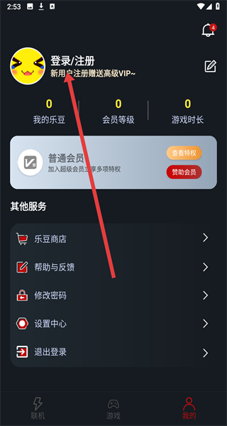 1、在使用該軟件時(shí)需要先進(jìn)行登錄,新人需要先注冊(cè)然后再登錄成功后才能開(kāi)啟游戲聯(lián)機(jī)功能;