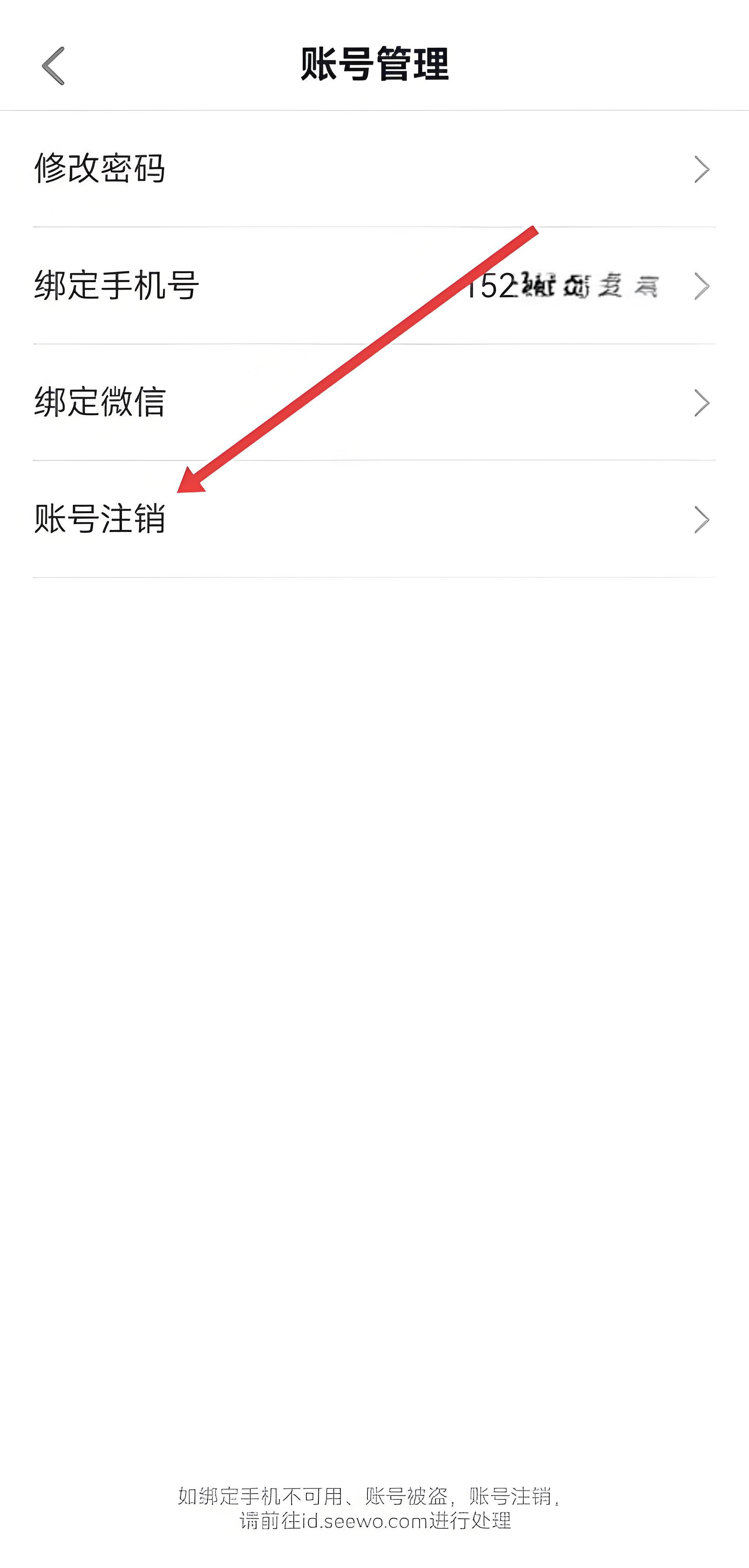 3、在賬號管理頁面,點擊賬號注銷選項,進入注銷賬號說明頁面。