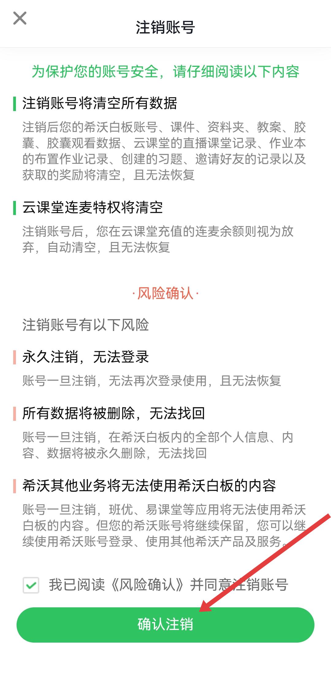 4、在注銷賬號頁面,勾選風(fēng)險確認(rèn),然后點擊確認(rèn)注銷按鈕,完成賬號注銷。