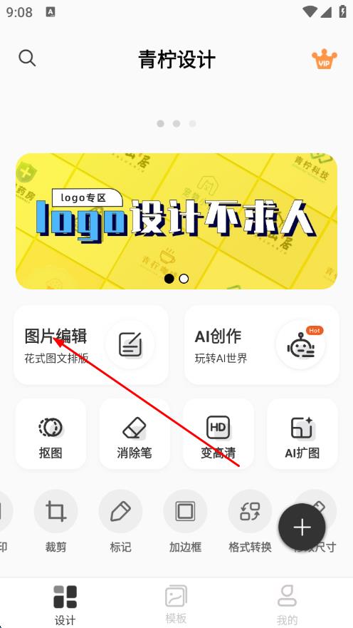 1、打開(kāi)青檸設(shè)計(jì)App,在主界面點(diǎn)擊圖片編輯選項(xiàng)。