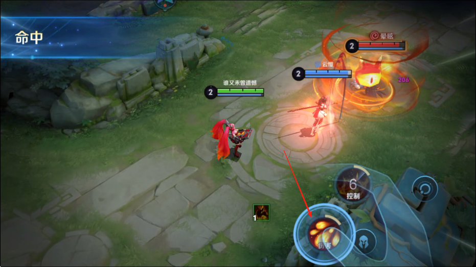 2、與敵方英雄遭遇時(shí),根據(jù)英雄技能特點(diǎn),點(diǎn)擊技能釋放按鈕,如帶有控制效果的技能,命中敵方英雄后,可限制其行動(dòng),配合普通攻擊打出傷害。