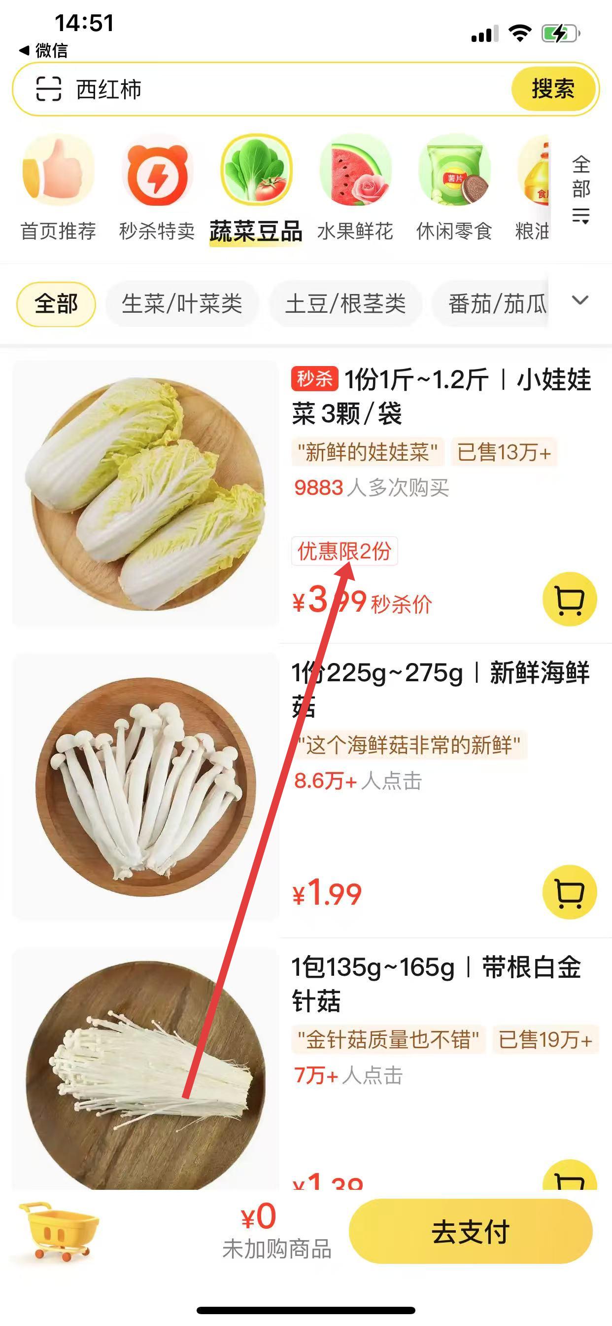 3、將選好的菜加入購(gòu)物車,點(diǎn)擊去支付。