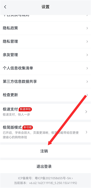 3、在設(shè)置頁(yè)面,找到并點(diǎn)擊注銷選項(xiàng),進(jìn)入注銷美團(tuán)優(yōu)選App服務(wù)頁(yè)面。