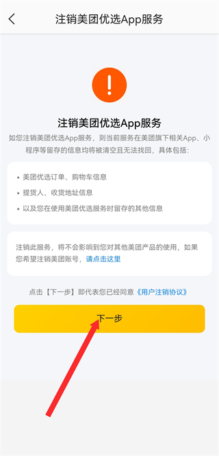 4、在該頁(yè)面,點(diǎn)擊下一步,按照后續(xù)提示完成賬號(hào)注銷操作即可。