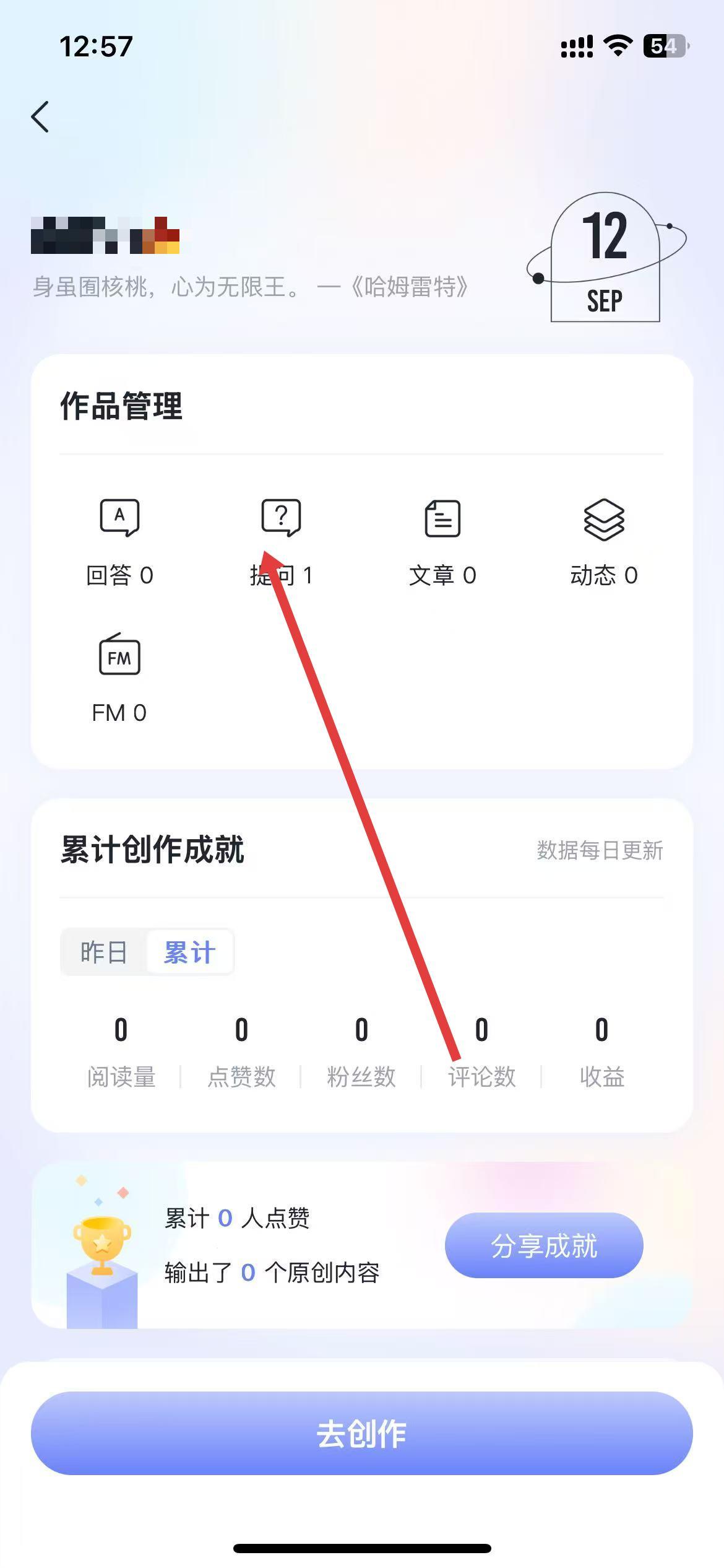 3、在我的內(nèi)容頁面中找到并點擊提問按鈕。