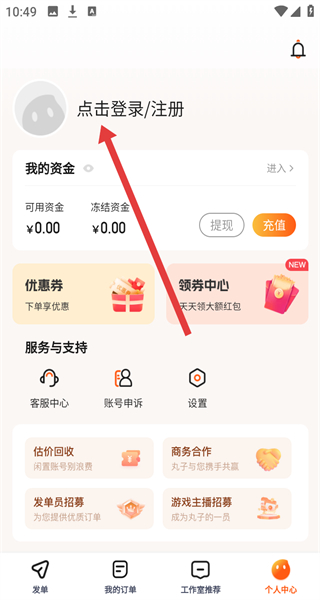 1、點擊“同意并繼續(xù)”,進入代練丸子APP首頁。
