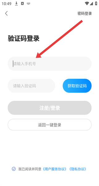 4、在驗證碼登錄頁面輸入手機號碼,點擊“獲取驗證碼”,輸入收到的驗證碼后,點擊“注冊/登錄”,完成賬號注冊登錄操作。