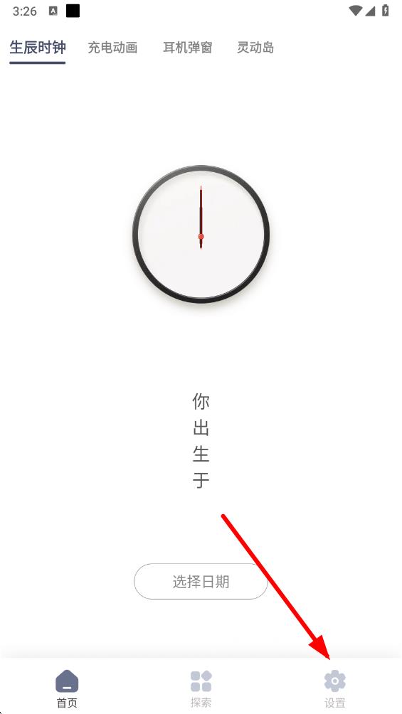 1、打開生辰app,點(diǎn)擊底部導(dǎo)航欄中的設(shè)置圖標(biāo)。
