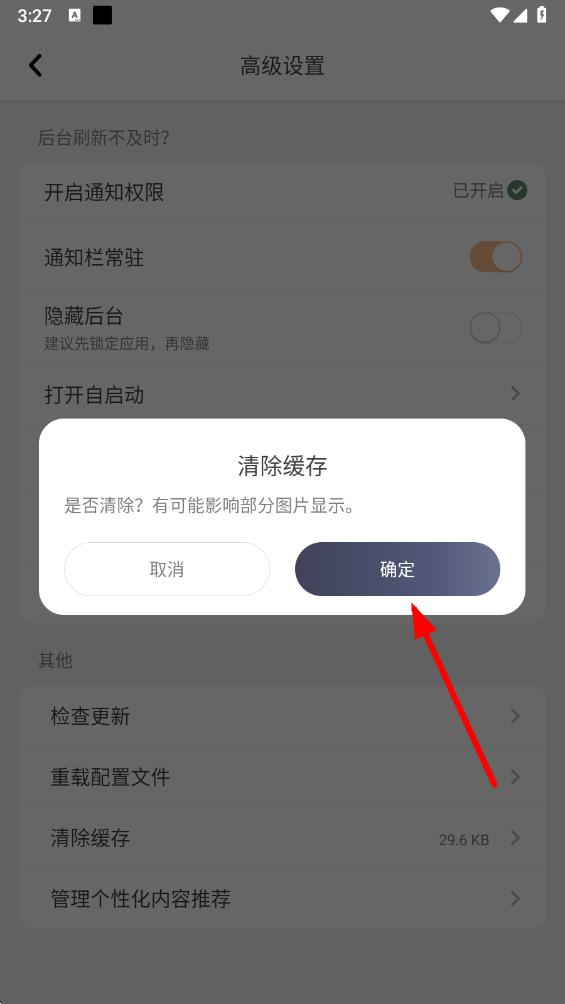 4、在彈出的確認(rèn)清除緩存的提示框中,點(diǎn)擊確定,即可完成緩存數(shù)據(jù)的清除。