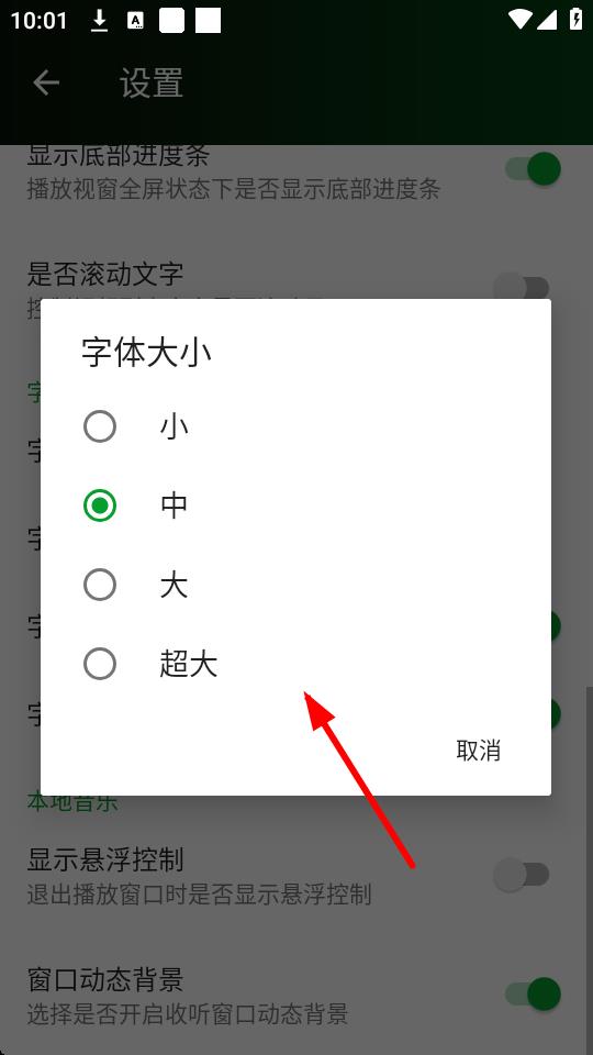 4、在彈出的字體大小選擇框中,選擇適合自己的字體大小即可完成設(shè)置。