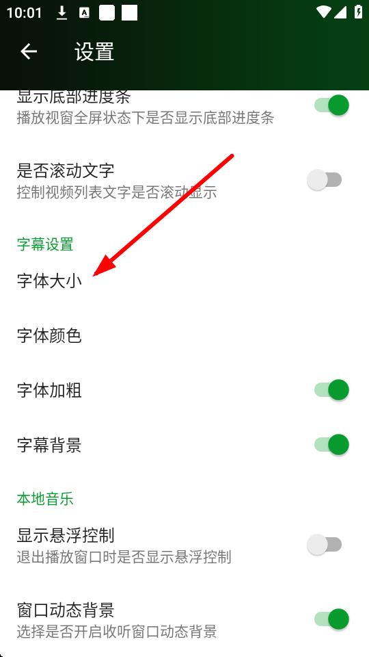3、在設(shè)置頁面里,找到字幕設(shè)置下方的字體大小選項并點擊。