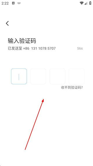 2、在輸入驗證碼頁面,填入收到的驗證碼,完成注冊并登錄。