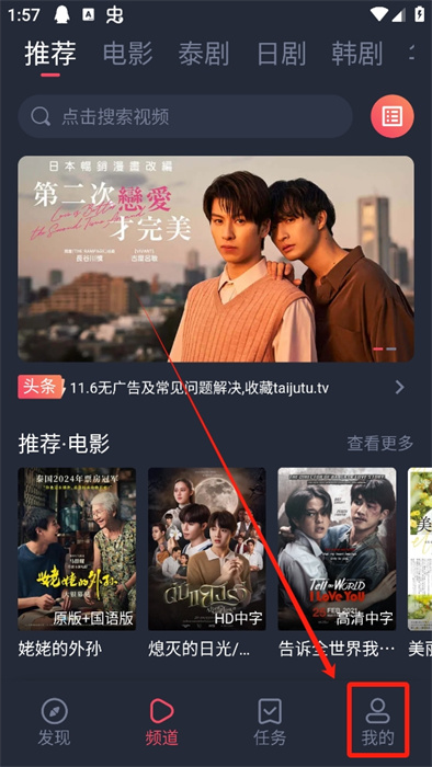 1、這款軟件想要開通會員其實不用花錢,也可以花錢,有兩個方式,看用戶如何選擇,在軟件的界面中點擊【我的】;