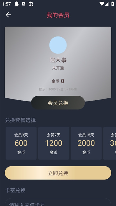 3、隨后我們可以看到可以通過使用金幣去進行開通,或者是使用卡密兌換會員;