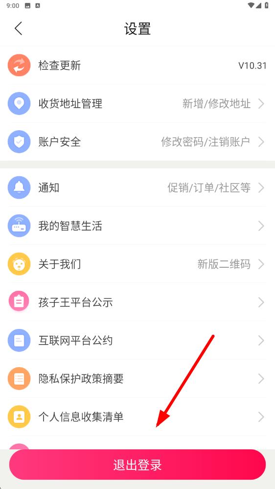 3、在設(shè)置頁面下滑至底部,點擊紅色的退出登錄按鈕,即可完成退出登錄。