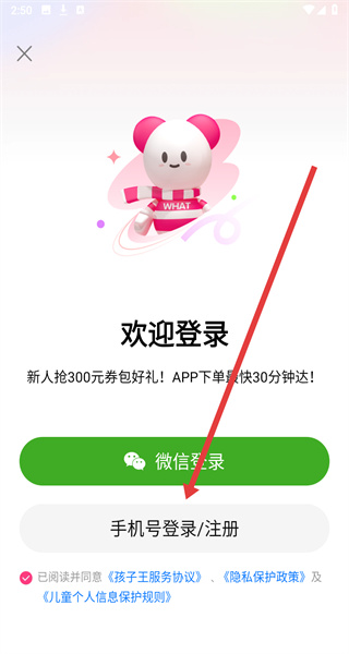 2、在跳轉(zhuǎn)到登錄頁面中時,可以點擊手機號登錄/注冊按鈕,進行登錄。