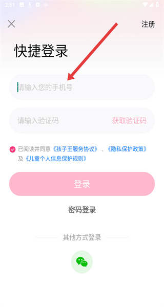 3、在進入到手機號登錄頁面后,可以點擊上方輸入框填寫手機號,以便獲取驗證碼進行登錄。