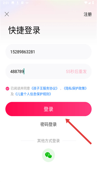 4、在依次填寫好手機號和驗證碼后,點擊登錄按鈕即可完成登錄操作。