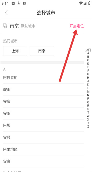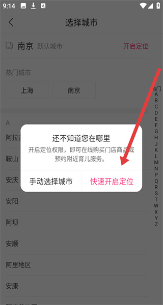 3、彈窗點擊“快速開啟定位”,開啟定位權(quán)限后自動定位到所在城市。