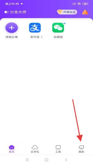 1、打開分身大師APP,在首頁內(nèi)點(diǎn)擊右下角我的圖標(biāo)。