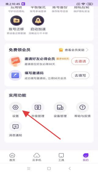 1、打開分身大師應(yīng)用,在個(gè)人中心的實(shí)用功能區(qū)域,點(diǎn)擊設(shè)置。
