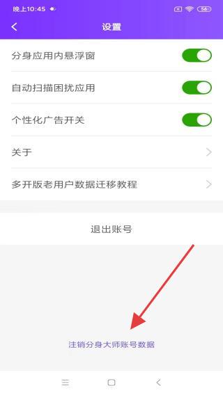 3、進(jìn)入設(shè)置的界面內(nèi),點(diǎn)擊注銷分身大師賬號數(shù)據(jù)的功能。