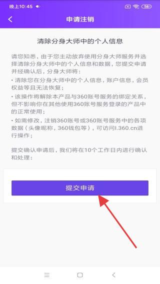 4、進(jìn)入申請注銷的頁面內(nèi),仔細(xì)閱讀后再點(diǎn)擊提交申請的按鈕即可。