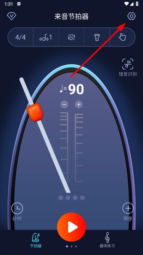 1、打開來音節(jié)拍器app,在主界面點(diǎn)擊右上角的齒輪設(shè)置圖標(biāo),進(jìn)入設(shè)置頁面。