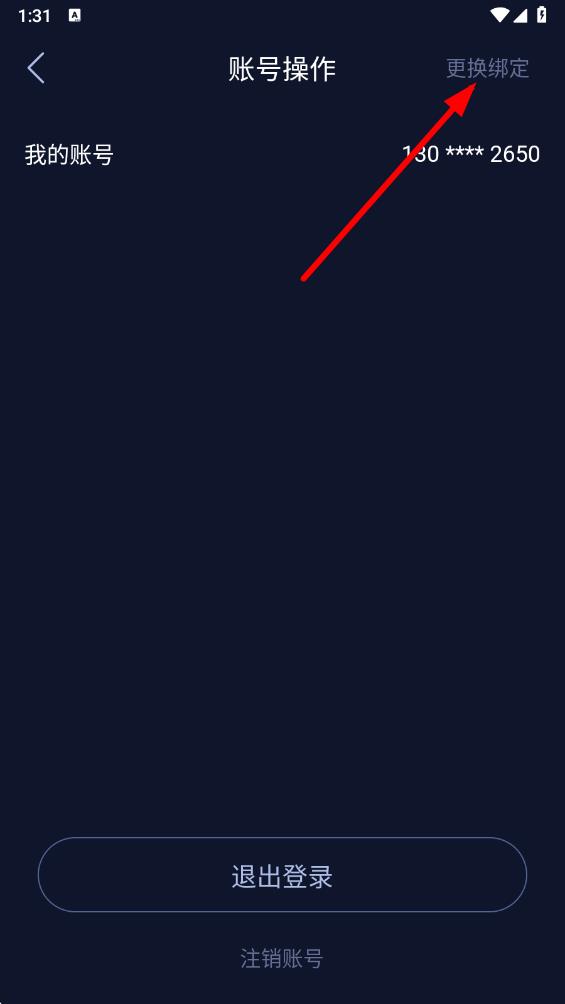 3、在賬號操作界面里,點(diǎn)擊右上角的更換綁定按鈕,準(zhǔn)備進(jìn)行手機(jī)號更換操作。
