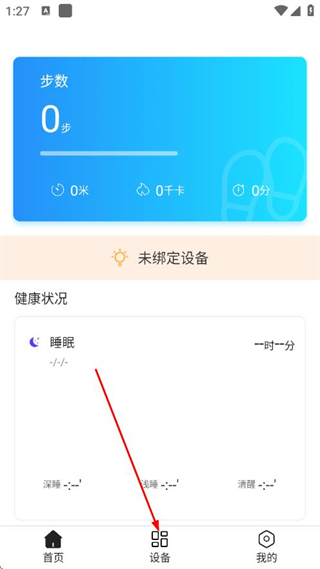 1、打開Diri Fit APP,點擊底部導(dǎo)航欄的設(shè)備。