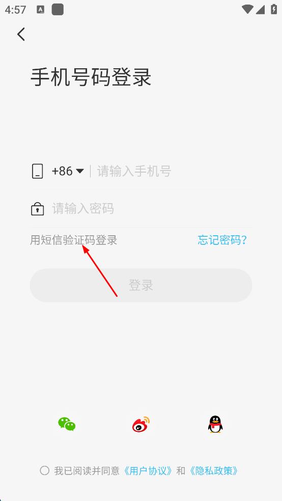 2、在登錄頁面,點擊“用短信驗證碼登錄”。