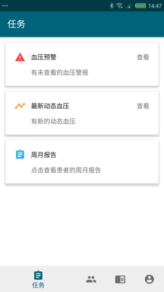 各大醫(yī)院的專業(yè)醫(yī)師可通過App及時(shí)了解綁定患者血壓的平均水平、晝夜節(jié)律、晨峰現(xiàn)象等指標(biāo),并根據(jù)各指標(biāo)做出評(píng)估,及時(shí)調(diào)整治療方案,有效的控制和管理血壓。同時(shí),該系統(tǒng)還具有預(yù)警功能,一旦血壓過高,專業(yè)的醫(yī)務(wù)團(tuán)隊(duì)將及時(shí)給用戶電話詢問情況并指導(dǎo),讓高血壓患者足不出門就可以得到專業(yè)指導(dǎo)和幫助,必要時(shí)還可直接去問診醫(yī)生所在醫(yī)院就診,有利于醫(yī)生患者互動(dòng)共同控制高血壓。