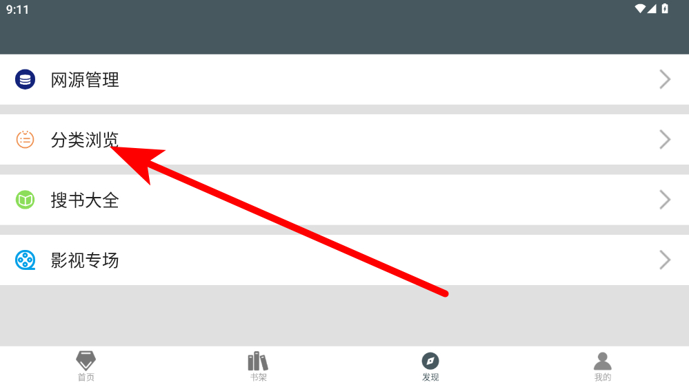 2、在發(fā)現(xiàn)頁面,點擊分類瀏覽選項,進入分類界面。