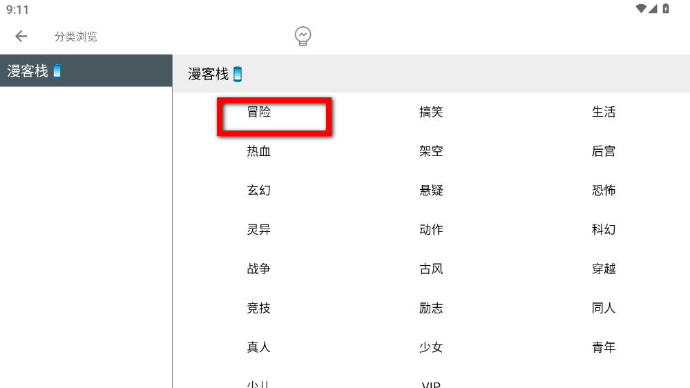 3、在分類界面,選擇想要瀏覽的書籍分類,比如冒險。