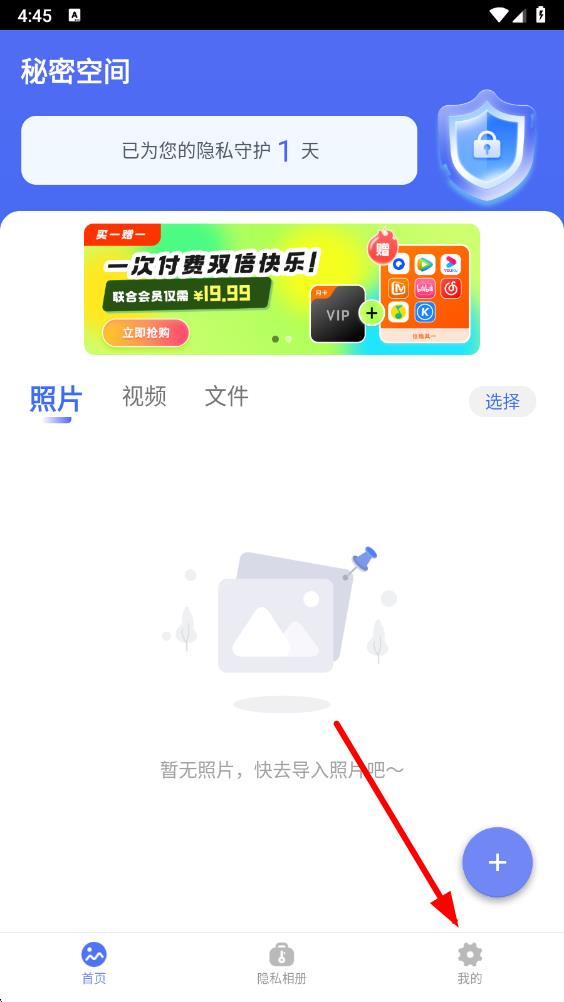 1、打開(kāi)秘密空間app,點(diǎn)擊底部導(dǎo)航欄最右側(cè)我的選項(xiàng),進(jìn)入個(gè)人相關(guān)設(shè)置界面。