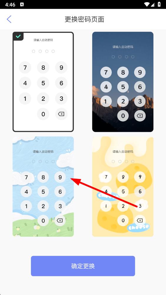 3、在更換密碼頁(yè)面,選擇你想要更換的密碼界面壁紙樣式。