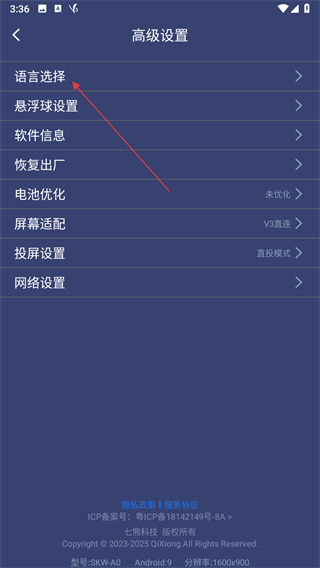 3、進入高級設(shè)置頁面后,點擊語言選擇選項,進入選擇頁面。